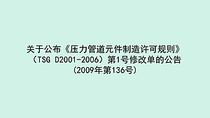 关于公布《压力管道元件制造许可规则》(TSG D2001-2006)第1号修改单的公告(2009年第136号)